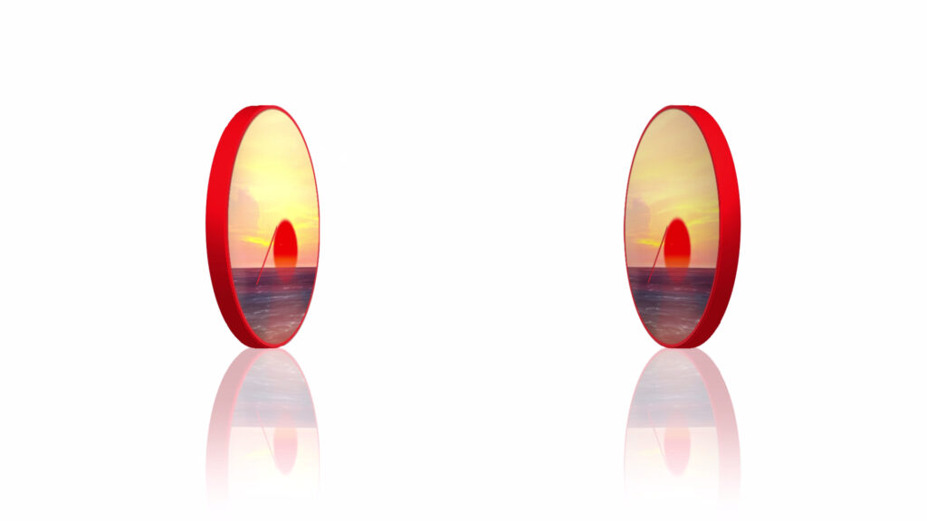 The essay like narration of the voice-over is based on broad and associative research around time and space in philosophy, physics, mathematics, psychology, sociology, art, pop culture and conspiracy theories. A voice with neutral tone, speaking English with a German accent, explores individual and cultural perceptions of time while as a repetitive and recursive motif a digitally animated clock, spins, merges and divides, psychedelically changes shape and becomes a sunset/sunrise over the ocean resembling a screensaver from the 2000s.