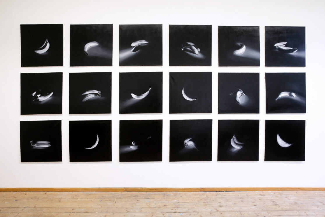 Playing with dimension and scale, ideas and projections, perception and expectation, figuration and abstraction, language and imagery, seriousness and humor, I create new perspectives, meanings and links to find one in the other - the Milky Way in the coffee cream, the banana in the night sky.