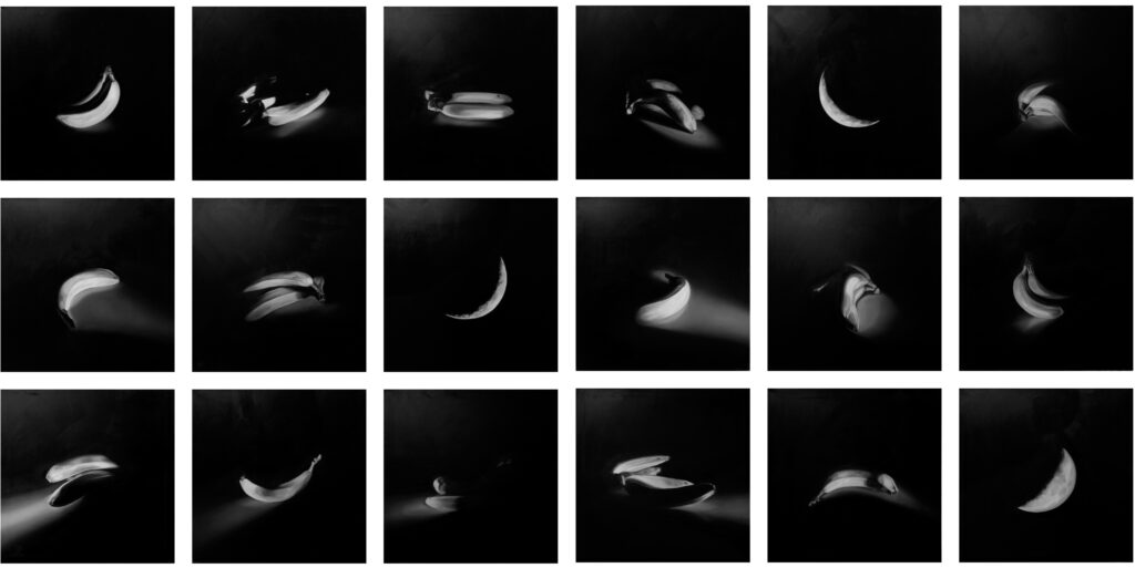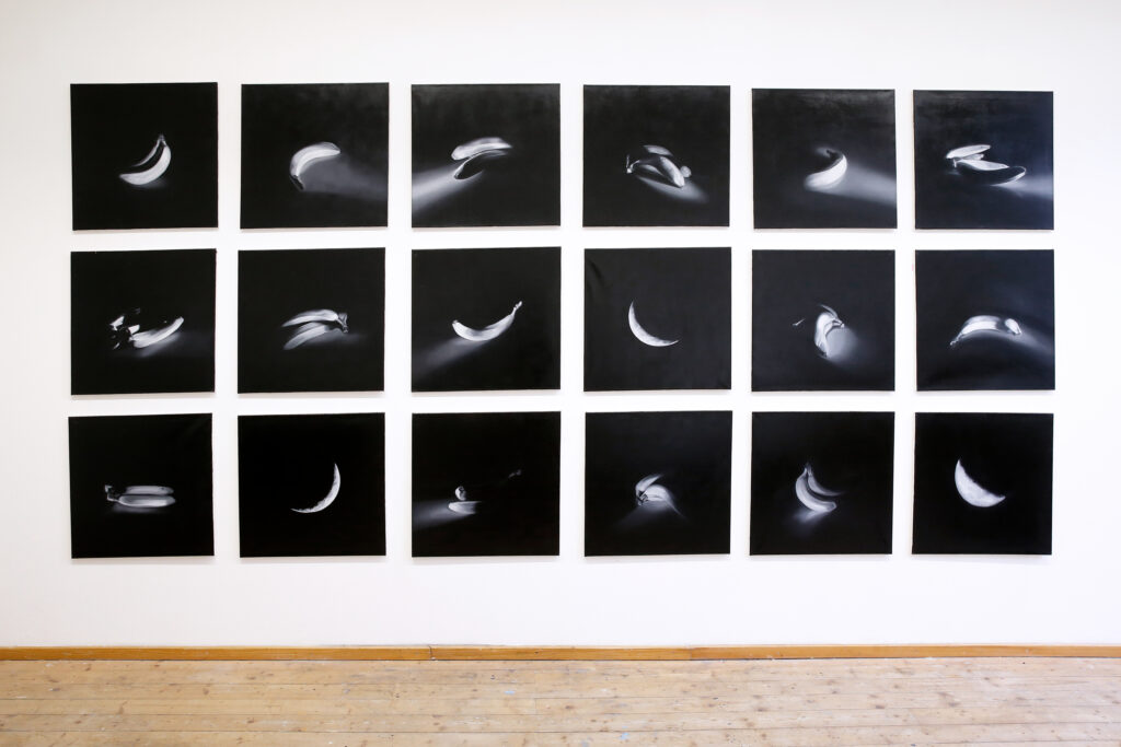 Playing with dimension and scale, ideas and projections, perception and expectation, figuration and abstraction, language and imagery, seriousness and humor, I create new perspectives, meanings and links to find one in the other – the Milky Way in the coffee cream, the banana in the night sky.
