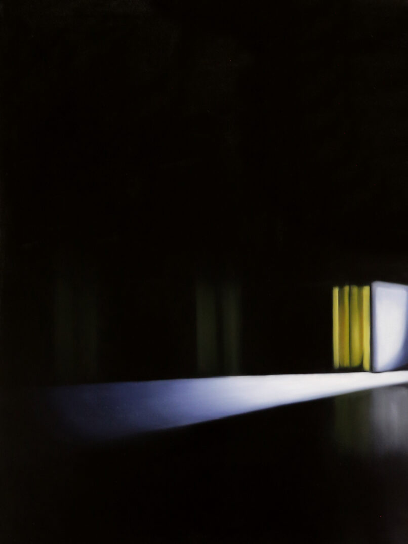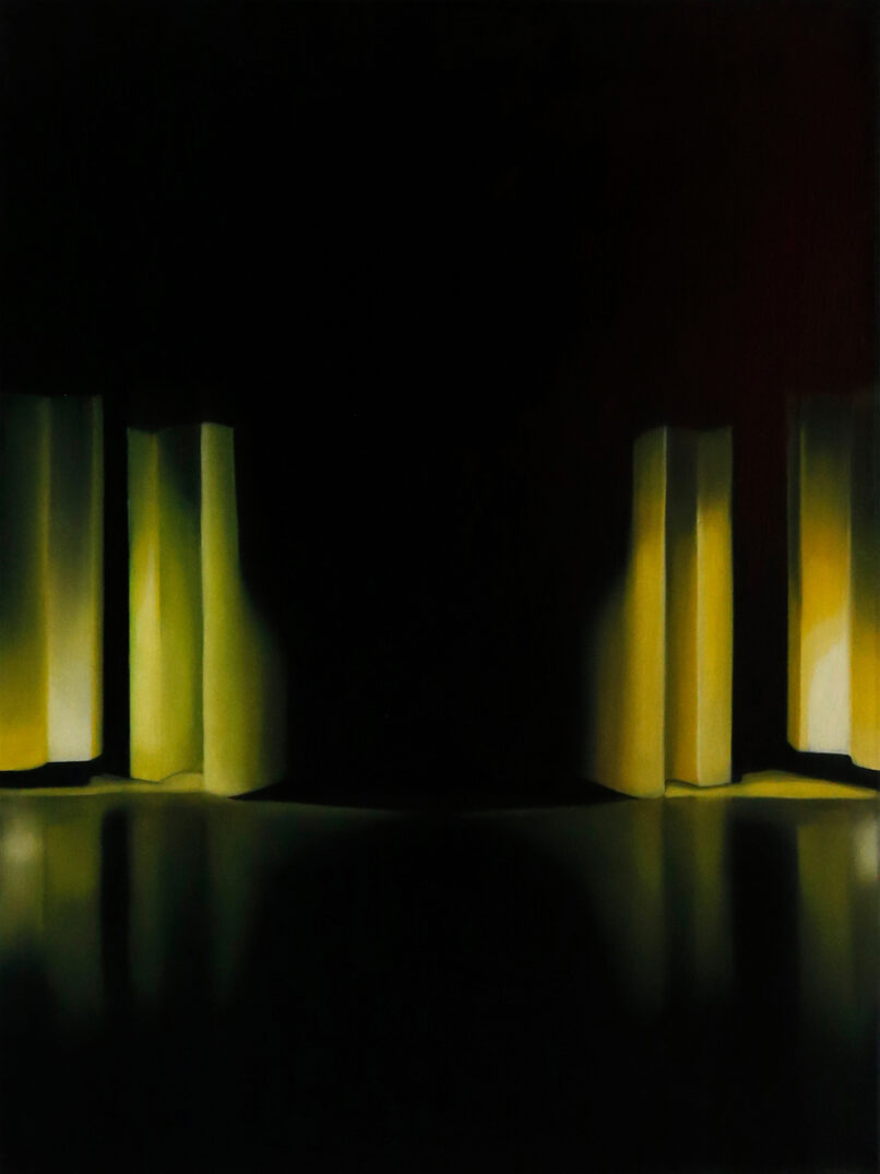 This series of paintings show still lifes of kitchen sponges, which I arranged and illuminated to become astronomic or cosmic objects like Stonehenge or Kubrik’s monolith. The titles refer to physical light effects and astronomical events.