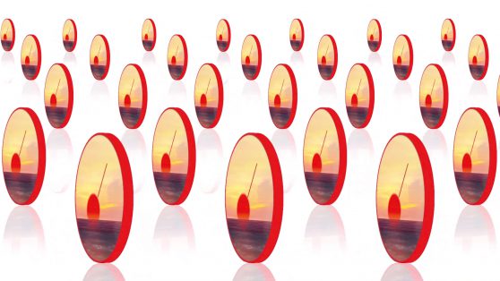 The essay like narration of the voice-over is based on broad and associative research around time and space in philosophy, physics, mathematics, psychology, sociology, art, pop culture and conspiracy theories. A voice with neutral tone, speaking English with a German accent, explores individual and cultural perceptions of time while as a repetitive and recursive motif a digitally animated clock, spins, merges and divides, psychedelically changes shape and becomes a sunset/sunrise over the ocean resembling a screensaver from the 2000s.