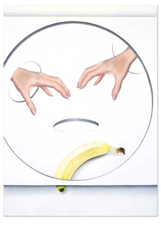 Strobel’s paintings do not depict real spaces or possible architectures in which narrative situations take place; her sculptures open up a linguistic space rather than a spatial one. She develops abstract scenes that are both axiomatic and enigmatic, and in which different forms and elements meet. Her own idiosyncratic logic and her use of (impossible) structures, serve her as a mental springboard. She uses a pool of recurring motifs like hands, tennis balls, bananas or door handles, to explore how objects, as things observed and perceived by subjects, achieve meaning - general and personal.