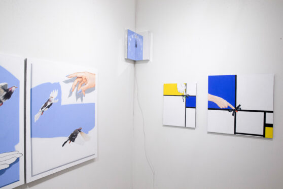 GALERIE ISABELLE LESMEISTER is happy to present new sculptures and paintings by interdisciplinary artist Johanna Strobel. Strobel’s paintings literally and metaphorically connect motifs like butterflies, birds, and hands with strings, patterns, and words to create multiple figurative and linguistic layers of meaning.