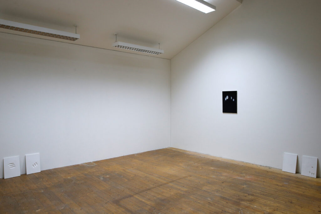 For this installation I manipulated the exhibition space: I built a wall in front of the window and subtle change the light bulbs with foil. A visitor who would be there the first time would not notice any alteration at all but the adjustments drastically changed the perception of the space. The usually light filled space now looked narrow and demure.